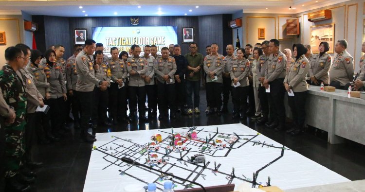 Pada H-1 kegiatan Mujahadah Kubro 1 Abad NU, Kapolresta Malang Kota, Kombes Pol Putu Kholis Aryana didampingi Kabag Ops Kompol Wiwin Rusli memimpin Tactical Floor Game (TFG) di Ballroom Sanika Satyawada, Jumat (06/02/2026).